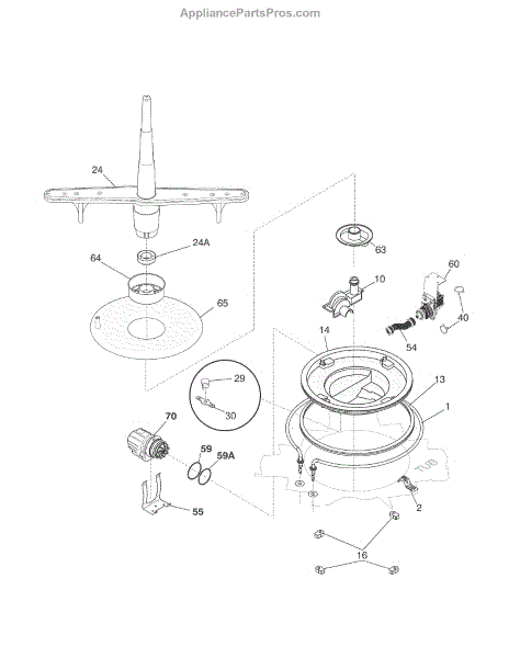 Fix a dishwasher that won't spray water or makes loud grinding noises with this circulation pump motor. Repair takes 45 minutes to 2 hours for DIYers.