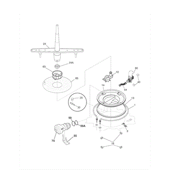 Complete dishwasher filter assembly that strains food particles and debris from wash water. Replace when clogged, cracked, or dishes aren't cleaning properly.