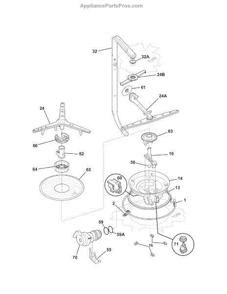 Filters food particles from wash water to prevent pump damage. Replace if overflow nozzle breaks, parts separate, or drainage issues occur. Confirm fit.