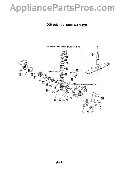 Parts for Magic Chef DU100B-02: 03 - Motor & Pump Parts