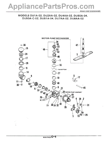 Parts for Magic Chef DU4AA-02: 02 - Motor & Pump Parts