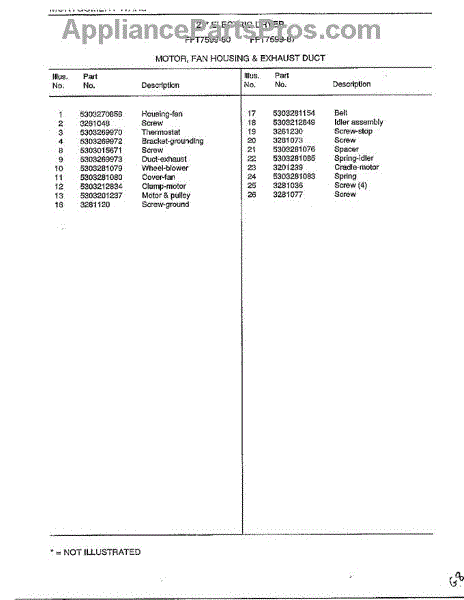 Parts for Frigidaire 7599-80: Motor, Ran Housing & Exhaust Duct Page 2 Parts