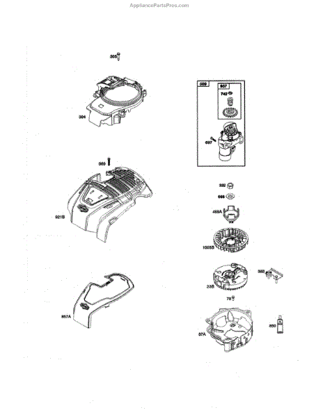 Parts for Briggs & Stratton 104M02-0074-F1: Motor-Starter / Blower Housing Parts