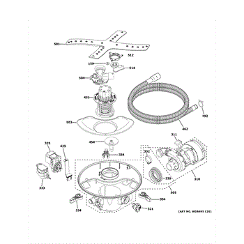 The Lower Arm Spray Assembly is an OEM replacement part for GE dishwashers. It refers to the horizontal component below the wash arm that provides lower zone spray coverage. Subject to years of continuous use, this plastic assembly can show wear.