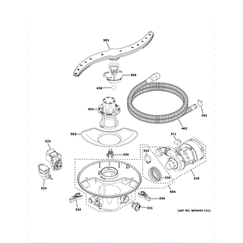 Parts for Ge CDT800P2N4S1: Motor, Sump & Filter Assembly Parts