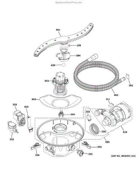 Parts for Ge GDT530PGP4BB: Motor, Sump & Filter Assembly Parts
