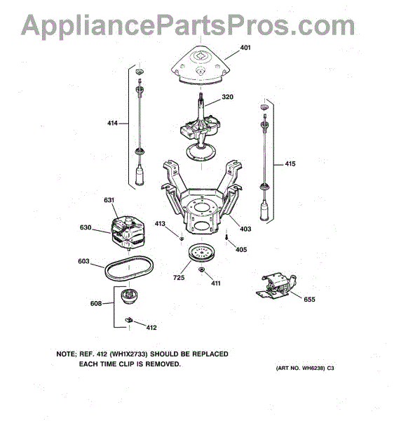 For retaining clip separately use WH1X2733. For washers with removable front panel.