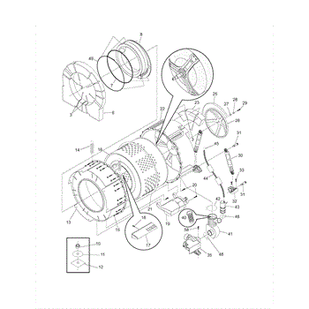 The Gasket is an OEM part for Frigidaire washing machines. This part is located between the front and rear outer tubs and prevents water leaks by maintaining a watertight seal between them. The gasket acts as a barrier to ensure that water used during the washing process remains contained within the inner tub, preventing it from seeping into the washing machine's surrounding components.