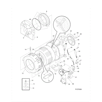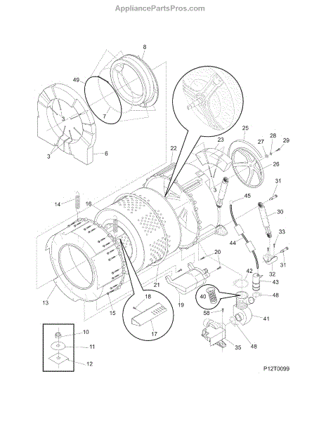The Gasket is an OEM part for Frigidaire washing machines. This part is located between the front and rear outer tubs and prevents water leaks by maintaining a watertight seal between them. The gasket acts as a barrier to ensure that water used during the washing process remains contained within the inner tub, preventing it from seeping into the washing machine's surrounding components.