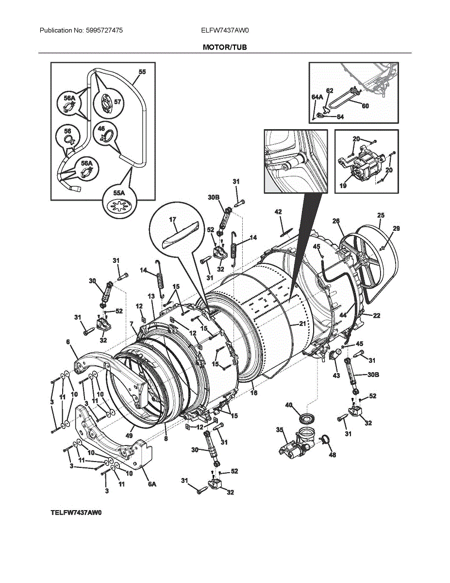 Seals your washer door to prevent leaks and maintain proper closure. Replace if you notice water leaking, tears, or mold buildup. Verify fit with your model.