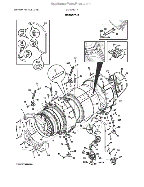 This OEM Frigidaire part is compatible with Electrolux, Gibson, Kelvinator, and Kenmore front-loading machines.