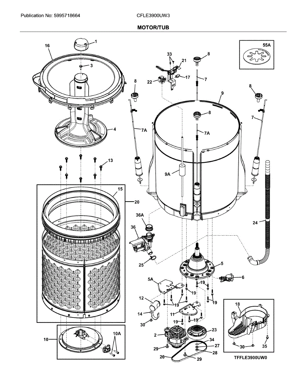 Parts for Frigidaire CFLE3900UW3: Motor / Tub Parts