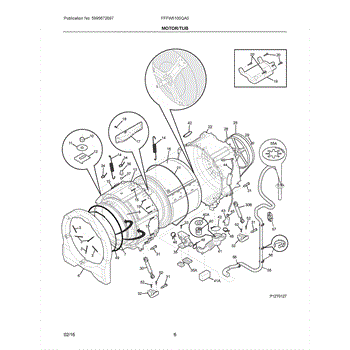 The Drain Hose is an OEM part for Frigidaire washing machines. It transports water from the spinning tub out of the appliance to the household drain connection point.
