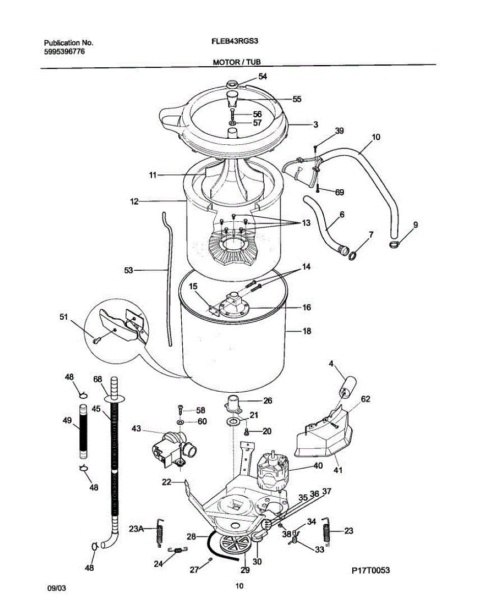Parts for Frigidaire FLEB43RGS3: 11 - Motor / Tub Parts