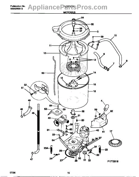 The trunnion is the hub that mounts the washer's inner tub to the drive shaft. Replacing a worn hub restores a solid, centered connection so the basket spins smoothly without wobble, slip, or grinding. What it does:
