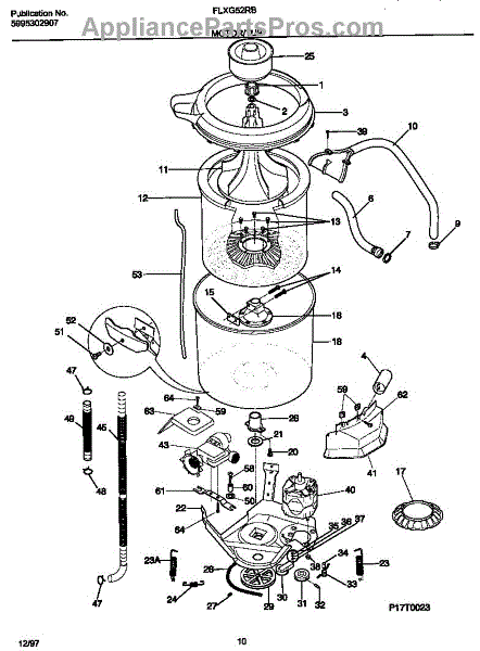 Pressure tube connects washer tub to water level switch. Replace if cracked, kinked, or clogged to restore proper water level sensing in your laundry center.