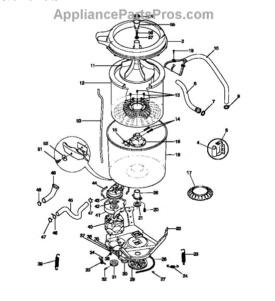 The trunnion is the hub that mounts the washer's inner tub to the drive shaft. Replacing a worn hub restores a solid, centered connection so the basket spins smoothly without wobble, slip, or grinding. What it does: