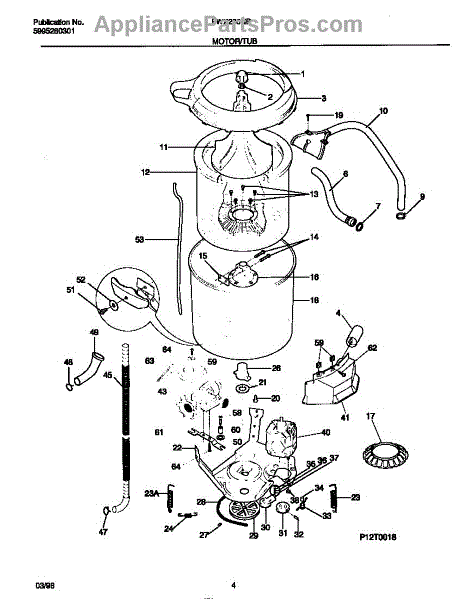 Pressure tube connects washer tub to water level switch. Replace if cracked, kinked, or clogged to restore proper water level sensing in your laundry center.
