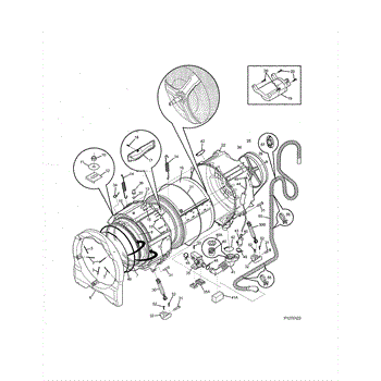This tub filter screens wash water as it leaves the outer tub, capturing lint and small items before they reach the drain pump. Replacing a damaged or missing filter helps restore proper draining and protect the pump from debris.