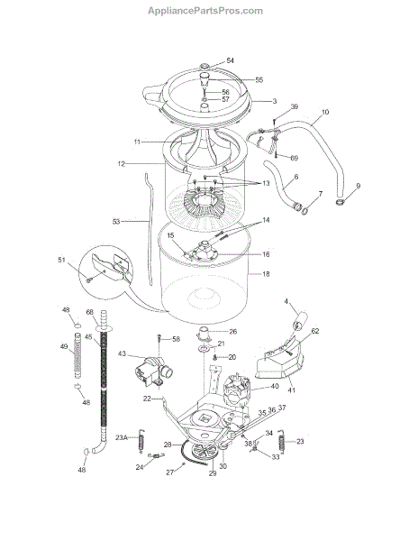 The trunnion is the hub that mounts the washer's inner tub to the drive shaft. Replacing a worn hub restores a solid, centered connection so the basket spins smoothly without wobble, slip, or grinding. What it does: