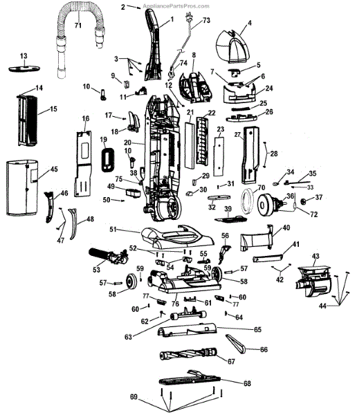 Parts for Hoover U5750-911: Motor, Turbinehandtool, Handle, Mainbody Parts