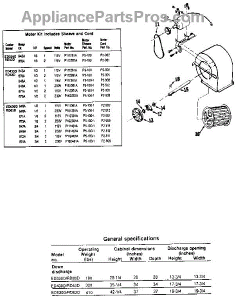 Parts for Adobe Aire ED430D/RD43D: Motors And Associated Parts