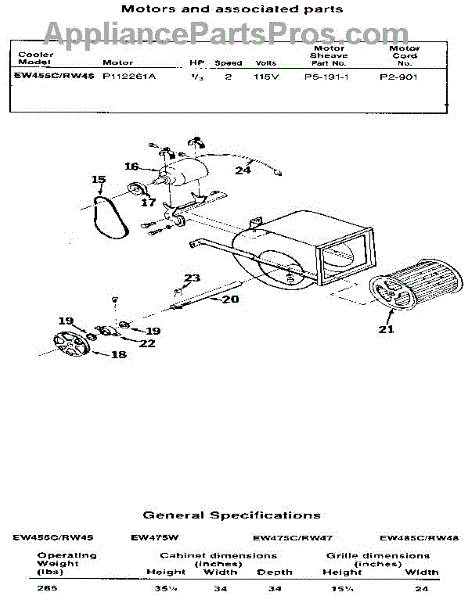 Parts for Adobe Aire EW455C/RW45: Motors And Associated Parts