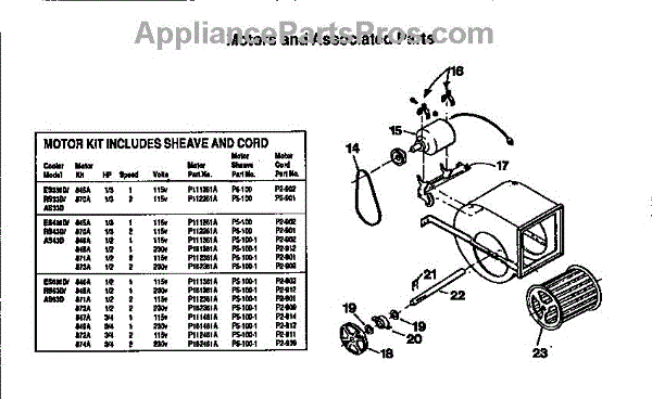 Parts for Adobe Aire ED430/871A: Motors & Assoclated Parts