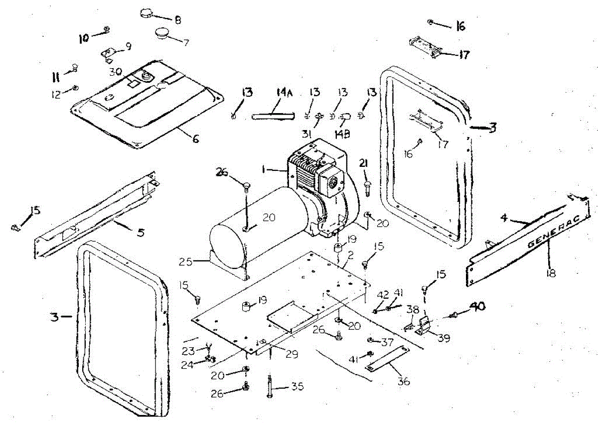 Parts for Generac 8877-0: Mounting Base And Engine Parts