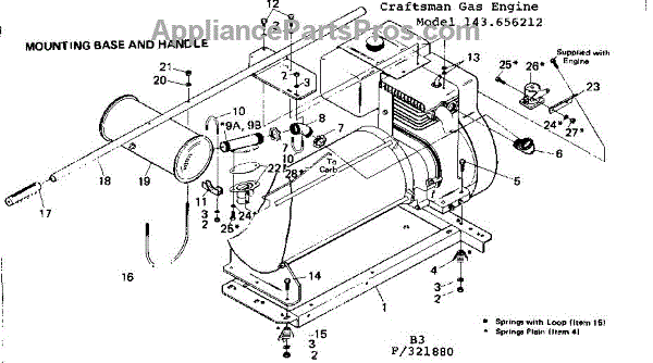 Parts for Craftsman 580321880: Mounting Base & Handle Parts