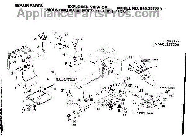 Parts for Craftsman 580327220: Mounting Base Muffler And Handle Parts
