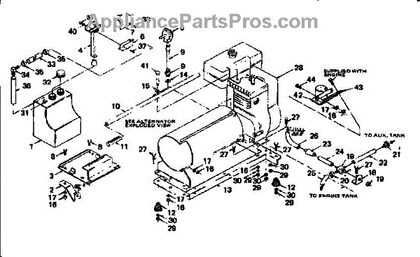 Parts for Craftsman 580327221: Mounting Base, Muffler And Handle Assembly Parts