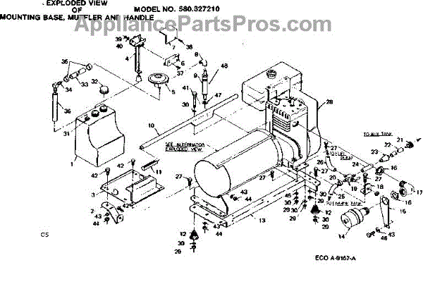 Parts for Craftsman 580327210: Mounting Base, Muffler And Handle Assembly Parts