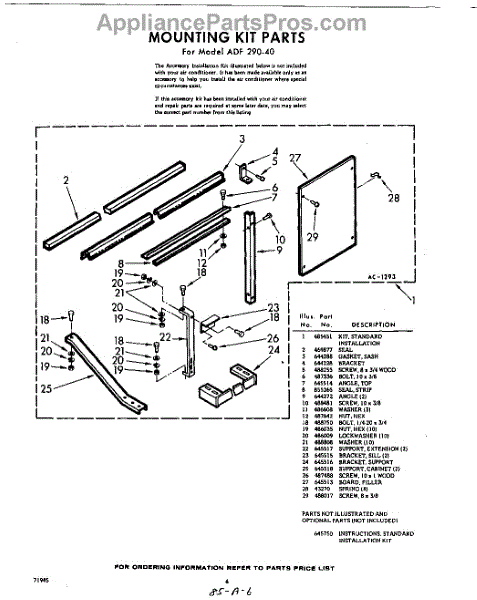 Parts for Whirlpool ADF29040: 06 - Mounting Kit Parts