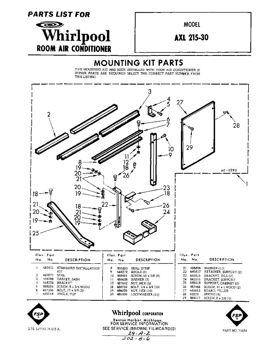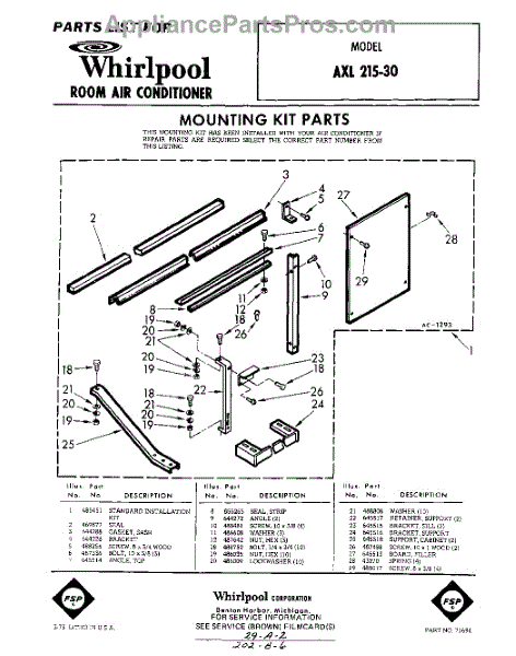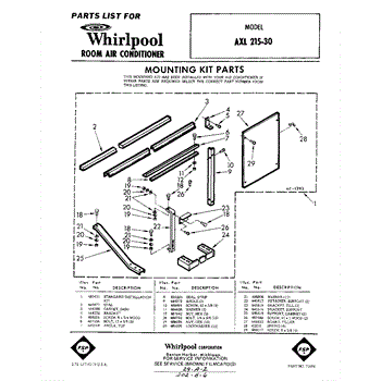 Parts for Whirlpool AXL21530: 01 - Mounting Kit Parts