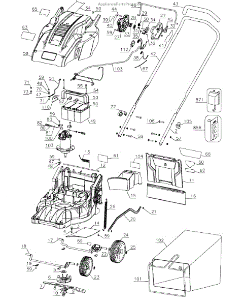 Parts for Black & Decker CM1836 TYPE 2: Mower Assy Parts