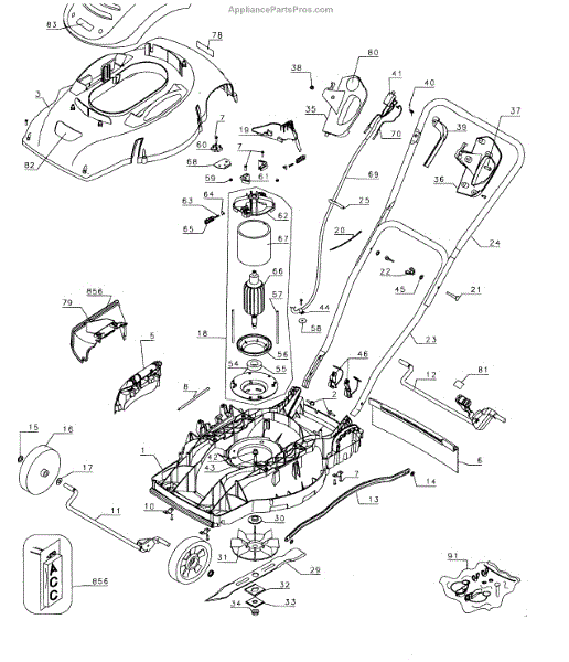 Parts for Black & Decker MM575 TYPE 1: Mower Assy Parts