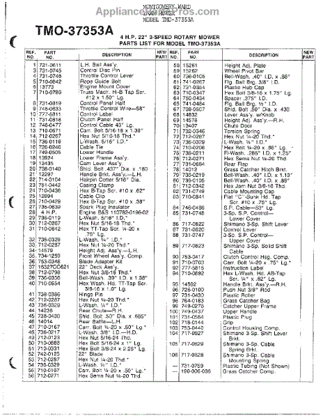 Parts for Mtd 37353A: Mower Complete / Notes Page 2 Parts