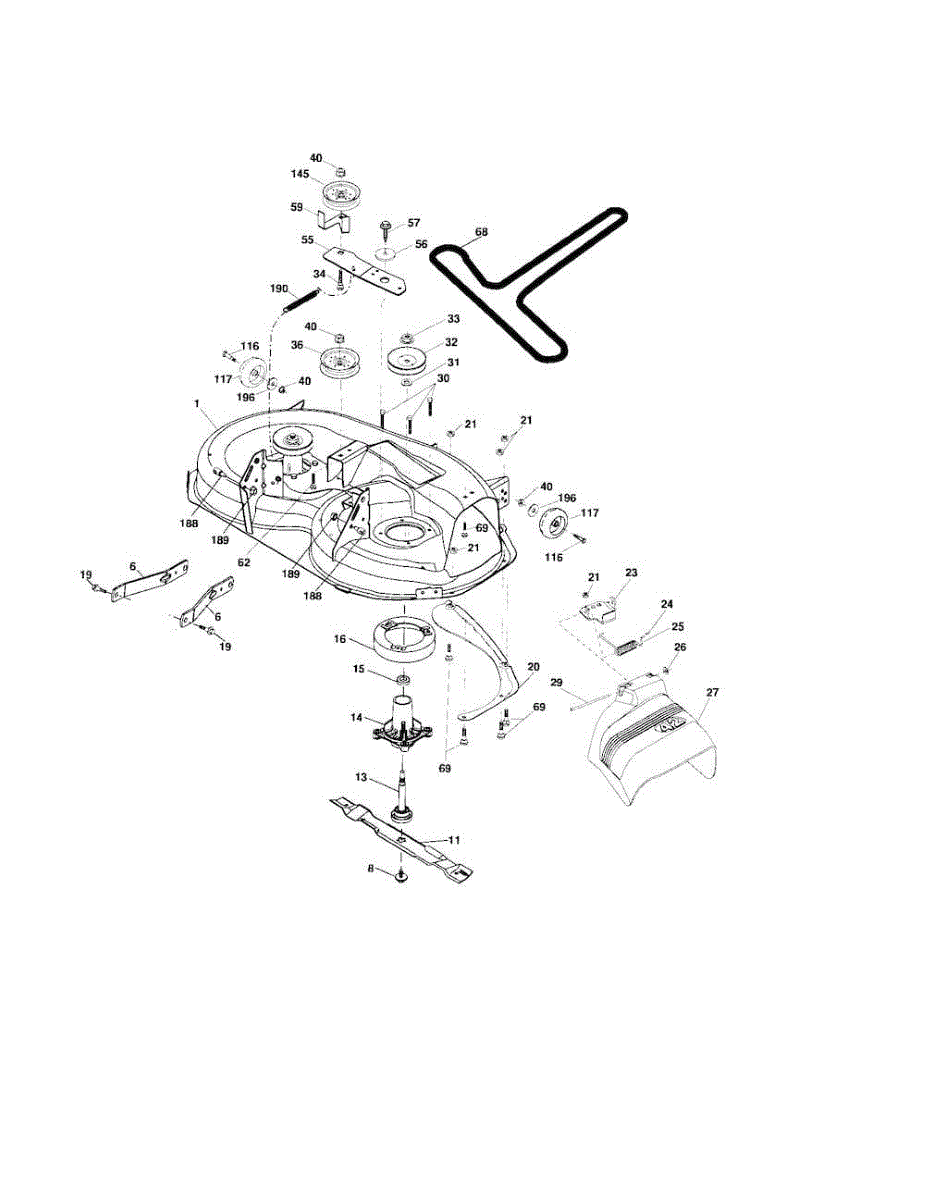 Secures the mower blade to the spindle on riding mowers and tractors. Replace if bolt is stripped, washer is damaged, or hardware is missing.