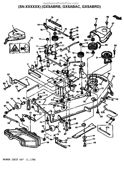 Parts for Sabre 1538 HYDRO GXSABRB: Mower Deck 48" (1.17M) Parts
