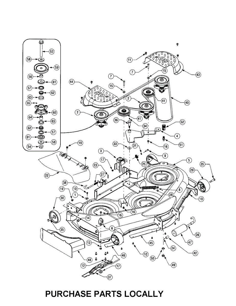 Mulch kit for 48", 50", and 54" mower decks. Converts your lawn tractor to mulching mode by recirculating clippings. Replace if blades or baffles are damaged.