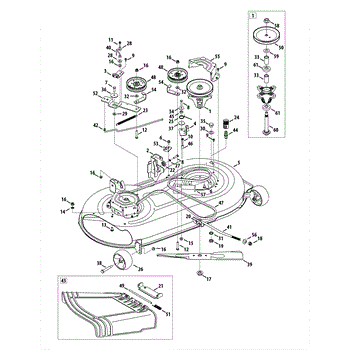 The Lawn Mower Spindle Assembly is an OEM part for MTD lawn mowers Located in the mower's lower deck, the spindle assembly connects the blade to the drive belt. This enables the mower to cut grass effectively. This assembly is comprised of an adapter and a spindle. It gets activated as a pulley spins the drive belt. While designed to withstand minor impacts, larger or harder objects may cause damage. Damage can lead to blade misalignment or detachment.