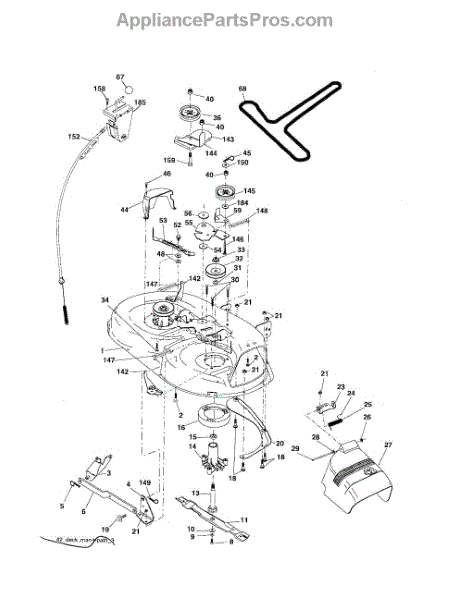 This is a belt guard for use with certain models of riding mower and lawn tractor. The belt guard is situated between the washer and the arm idler. The purpose of the guard is to help guide the belt so that it works properly. They could also help to protect the belts from damage and work as a safety feature.The belt guard is made from durable metal and it is made to last. However, owners might find that they eventually need to replace the piece if it breaks or has other damage. If the belt guard has been bent or if it is corroding, it will not do its job properly. Replacing the guard will require a socket set, wrench set, and a set of pliers.The belt guard can serve as a replacement for many models of riding mowers and tractors from Husqvarna, Weed Eater, Ryobi, Poulan, and Jonsered. The piece is sold individually, and it is an authentic OEM replacement part sourced from the manufacturer.