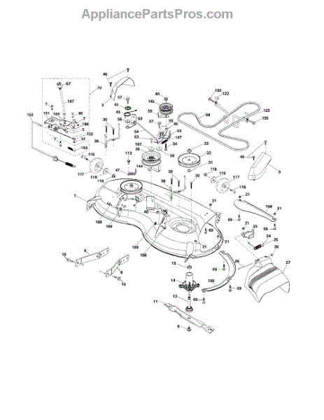 Right hand mandrel cover for riding mowers and lawn tractors. Protects the mandrel assembly that rotates the mower blades. Replace if cracked or broken.