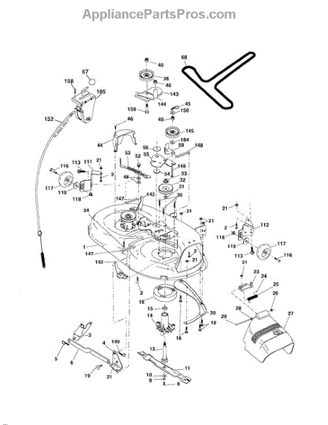 This is a belt guard for use with certain models of riding mower and lawn tractor. The belt guard is situated between the washer and the arm idler. The purpose of the guard is to help guide the belt so that it works properly. They could also help to protect the belts from damage and work as a safety feature.The belt guard is made from durable metal and it is made to last. However, owners might find that they eventually need to replace the piece if it breaks or has other damage. If the belt guard has been bent or if it is corroding, it will not do its job properly. Replacing the guard will require a socket set, wrench set, and a set of pliers.The belt guard can serve as a replacement for many models of riding mowers and tractors from Husqvarna, Weed Eater, Ryobi, Poulan, and Jonsered. The piece is sold individually, and it is an authentic OEM replacement part sourced from the manufacturer.