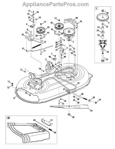 The Lawn Mower Spindle Assembly is an OEM part for MTD lawn mowers Located in the mower's lower deck, the spindle assembly connects the blade to the drive belt. This enables the mower to cut grass effectively. This assembly is comprised of an adapter and a spindle. It gets activated as a pulley spins the drive belt. While designed to withstand minor impacts, larger or harder objects may cause damage. Damage can lead to blade misalignment or detachment.