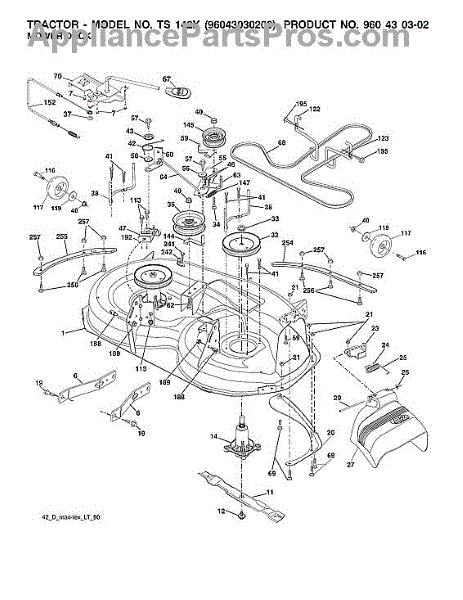 This no grease mandrel assembly is the part that houses the shaft where the mower blade attaches. It is mounted to the deck of the mower by three bolts, which are sold separately. The mounting holes on the mandrel housing are not threaded, but the bolts used to secure the mandrel to the deck are self-tapping. If the lawnmower is no longer providing an even cut, there may be a problem with the mandrel assembly. A broken or damaged mandrel assembly can severely reduce the mower's cutting performance. Replace it as soon as possible. The mandrel shaft goes through the deck, and the pulleys are attached to them, then the belt that drives the mandrels is placed in the pulleys. A spacer must be installed under the pulley. Failing to use a spacer or installing it on top of the pulley will result in damage to the shaft and pulley. This mandrel assembly is compatible with Ariens, Craftsman, Husqvarna, Poulan, and Weed Eater lawn mower models. It is an OEM part sourced directly from the manufacturer and is sold individually. The mandrel assembly includes a housing, shaft assembly, bearing, and nut only; the pulley/washer and blade bolt/washers are not included.
