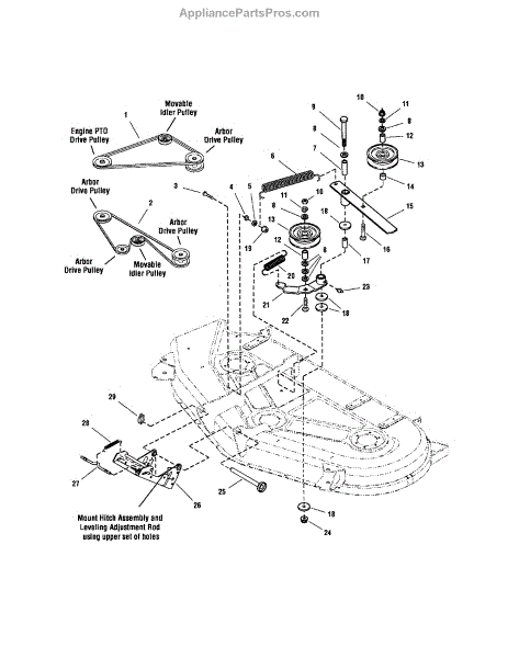 Parts for Snapper 2690630: 54" Mower Deck-Belt / Idler Arm / Hitch Parts