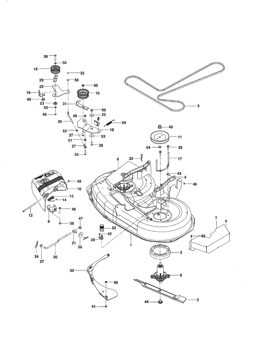 This no grease mandrel assembly is the part that houses the shaft where the mower blade attaches. It is mounted to the deck of the mower by three bolts, which are sold separately. The mounting holes on the mandrel housing are not threaded, but the bolts used to secure the mandrel to the deck are self-tapping. If the lawnmower is no longer providing an even cut, there may be a problem with the mandrel assembly. A broken or damaged mandrel assembly can severely reduce the mower's cutting performance. Replace it as soon as possible. The mandrel shaft goes through the deck, and the pulleys are attached to them, then the belt that drives the mandrels is placed in the pulleys. A spacer must be installed under the pulley. Failing to use a spacer or installing it on top of the pulley will result in damage to the shaft and pulley. This mandrel assembly is compatible with Ariens, Craftsman, Husqvarna, Poulan, and Weed Eater lawn mower models. It is an OEM part sourced directly from the manufacturer and is sold individually. The mandrel assembly includes a housing, shaft assembly, bearing, and nut only; the pulley/washer and blade bolt/washers are not included.