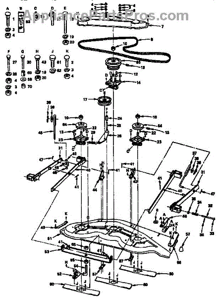 Parts for Craftsman 917253661: Mower Deck- Key Parts 1-36 Parts